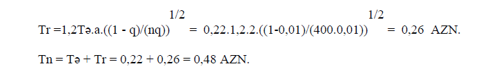 Tə = 100qSü/So = 100.0,01.110 000 000/500 000 000 = 0,22 AZN.