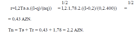 ə = lOOqSö/So = 0,2.100.1600/18000 = 1,78 AZN.