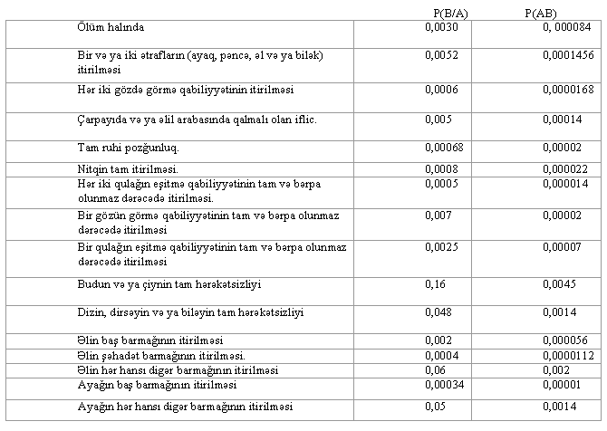 1. Bir və ya iki ətrafların (ayaq, pəncə, əl və ya bilək) itirilməsi – 100.